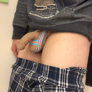 Wearing the Tommy STP with the AllDay harness underneath loose boxers. You can see that due to the shaft pointing out, it creates a pointy bulge.